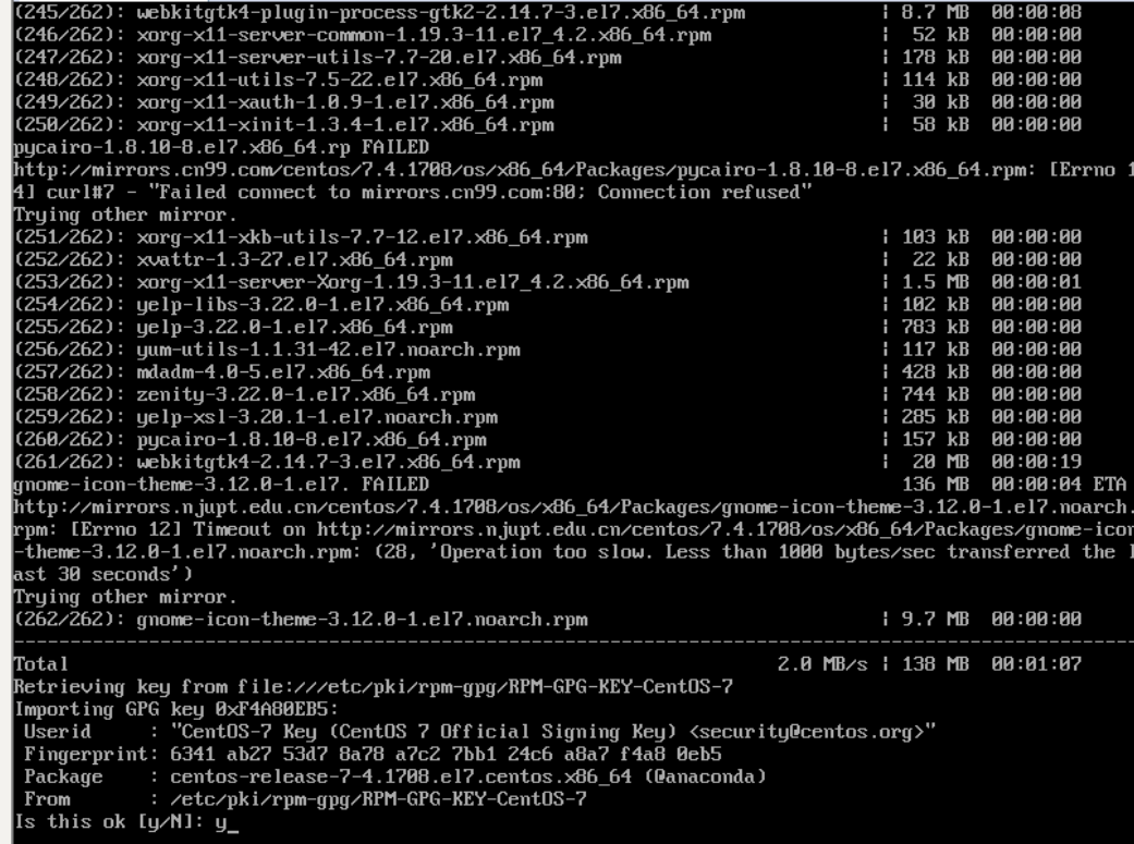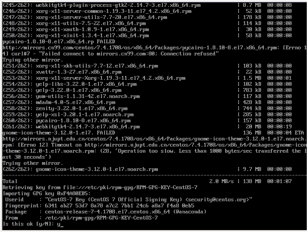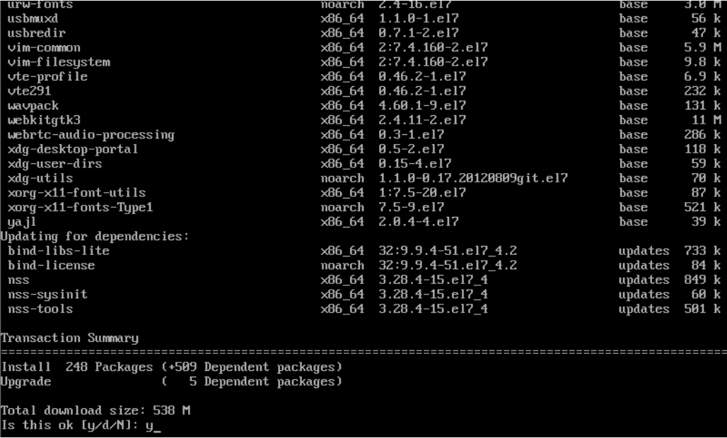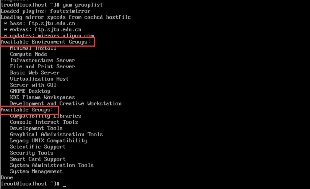 特别注意!!!!一定要注意名称必须对应,否则会出现No packages in any requested group available to install or update 的错误。这是因为不同版本的CentOS的软件名可能不同(其他 Linux 系统也是类似的)