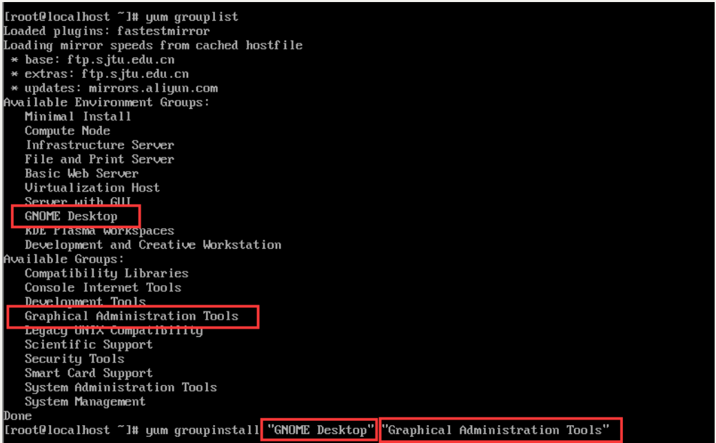 yum groupinstall "GNOME Desktop" "Graphical Administration Tools"